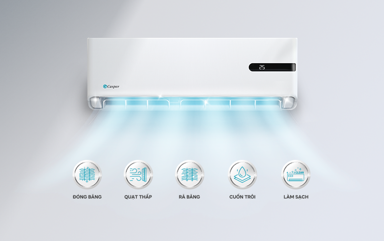 Các dòng điều hòa hiện nay như Casper được trang bị công nghệ Inverter giúp duy trì nhiệt độ ổn định và giảm tiêu thụ điện năng đáng kể. Khi sử dụng thêm chế độ ECO, máy vận hành êm hơn và hạn chế bật tắt liên tục. Ví dụ một số model như:
