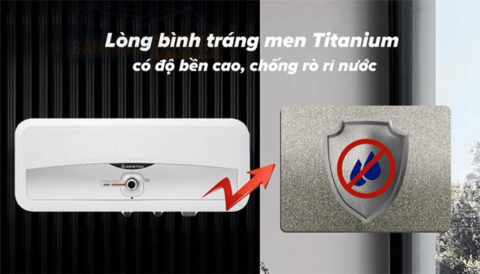 - Bên trong lòng bình còn được tráng lớp men Titan siêu bền, chống ăn mòn và góp phần làm gia tăng tuổi thọ của máy nước nóng.