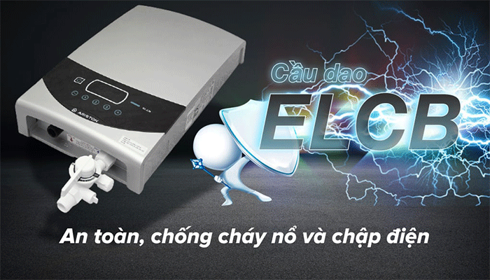 Chiếc bình nóng lạnh trực tiếp Ariston được trang bị cầu dao chống rò điện ELCB sẽ góp phần bảo vệ an toàn cho cả gia đình bạn nhờ khả năng ngắt điện kịp thời khi phát hiện sự cố rò rỉ.