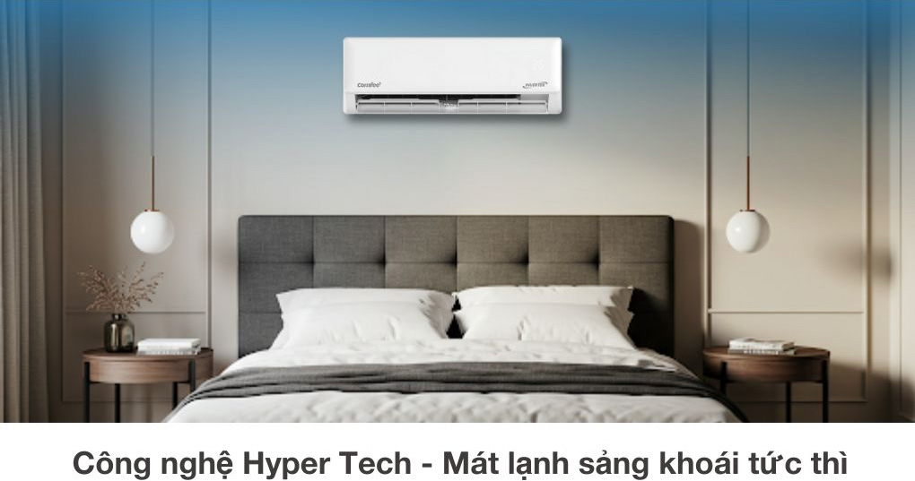 Điều hòa Comfee Inverter 1 chiều 9000BTU CFS-10VGD là dòng máy lạnh được nhiều gia đình lựa chọn nhờ khả năng làm lạnh nhanh, vận hành êm ái và tiết kiệm điện năng. Với công suất 9000btu, sản phẩm phù hợp lắp đặt cho phòng ngủ, phòng làm việc hoặc các không gian có diện tích dưới 15m². Thiết kế hiện đại kết hợp với nhiều công nghệ thông minh giúp mang lại không gian mát mẻ và dễ chịu trong những ngày nắng nóng.