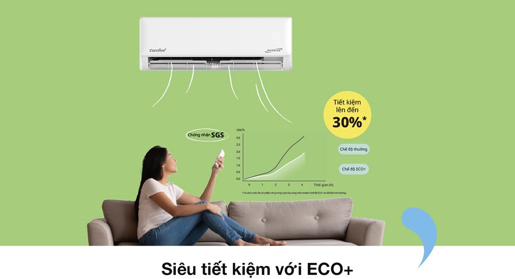Chế độ Eco+ giúp tối ưu mức tiêu thụ điện khi không cần làm lạnh ở công suất cao, đặc biệt phù hợp khi sử dụng vào ban đêm hoặc trong những ngày thời tiết mát.