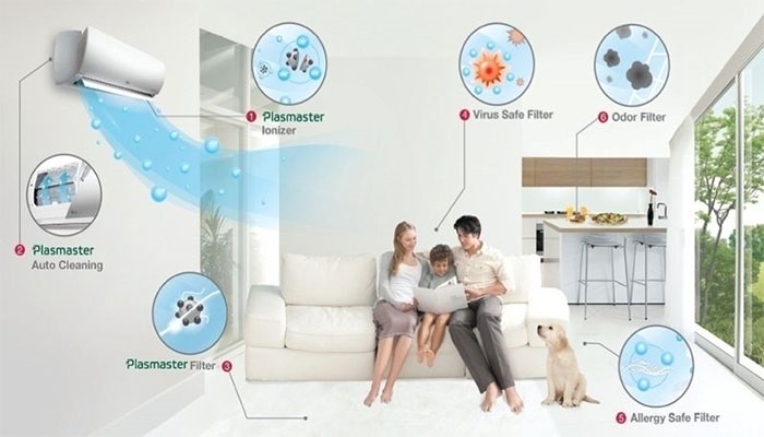 Điều hòa LG 9000btu bảo vệ không gian với tấm lọc bụi hiệu quả