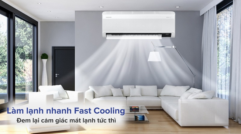 Với công suất 9000btu, máy đáp ứng hiệu quả nhu cầu làm mát cho phòng có diện tích dưới 15m². Công nghệ Fast Cooling giúp làm lạnh nhanh hơn, đưa nhiệt độ phòng về mức mong muốn trong thời gian ngắn. Đặc biệt, công nghệ Wind-Free phân tán hơi lạnh qua hàng nghìn lỗ nhỏ, tạo luồng khí nhẹ nhàng, tránh tình trạng gió thổi trực tiếp gây khó chịu.