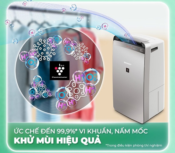 Điểm nổi bật của máy hút ẩm Sharp DW-J27FV-S là được trang bị công nghệ Plasmacluster Ion độc quyền từ Sharp. Công nghệ này giúp giải phóng các ion dương và âm vào không khí, hỗ trợ tiêu diệt vi khuẩn, virus, nấm mốc và các tác nhân gây dị ứng. Nhờ đó, không khí trong phòng luôn sạch sẽ, trong lành và an toàn hơn cho trẻ nhỏ, người lớn tuổi hoặc người có cơ địa nhạy cảm.