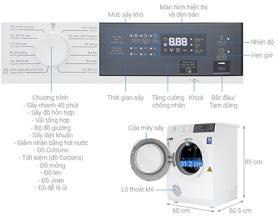 - Khối lượng sấy: 9kg