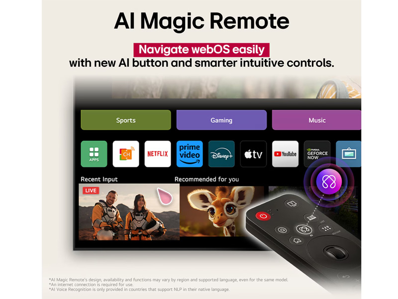 Smart Tivi LG 50UA8450 sử dụng hệ điều hành webOS với giao diện trực quan, dễ sử dụng cho mọi thành viên trong gia đình. Kho ứng dụng đa dạng cho phép truy cập nhanh chóng vào các nền tảng giải trí phổ biến như Netflix, YouTube, FPT Play và VieON. Chỉ cần kết nối WiFi, người dùng có thể khám phá hàng ngàn bộ phim, chương trình và nội dung hấp dẫn.