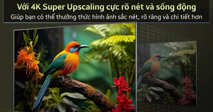 Tivi được tích hợp bộ xử lý α7 AI Processor 4K mạnh mẽ, có khả năng tự động phân tích và tối ưu chất lượng hình ảnh theo từng nội dung hiển thị. Công nghệ nâng cấp độ phân giải giúp cải thiện các nguồn phát chất lượng thấp lên gần chuẩn 4K, mang lại trải nghiệm xem mượt mà và rõ nét hơn.