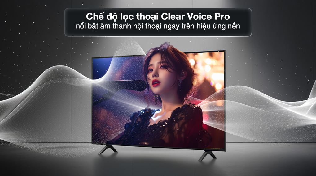 Chiếc tivi được trang bị hệ thống loa 20W 2 kênh, mang đến âm thanh đủ mạnh để lấp đầy không gian phòng khách. Nhờ công nghệ α7 AI Sound Pro, âm thanh được giả lập vòm 9.1.2 sống động, tạo cảm giác bao trùm như đang thưởng thức tại rạp phim. Ở các phân cảnh hội thoại, Clear Voice Pro giúp tách bạch lời nói, cho giọng nhân vật rõ ràng và dễ nghe hơn.
