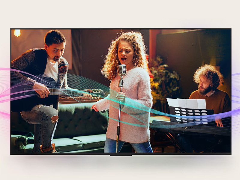 Tivi được trang bị bộ xử lý AI 4K thông minh giúp nâng cấp nội dung đầu vào lên gần chuẩn 4K, giảm nhiễu, tăng độ sắc nét và cải thiện độ tương phản. Công nghệ AI Sound tự động nhận diện nội dung để điều chỉnh âm thanh phù hợp, mang đến trải nghiệm nghe chân thực và rõ ràng hơn.