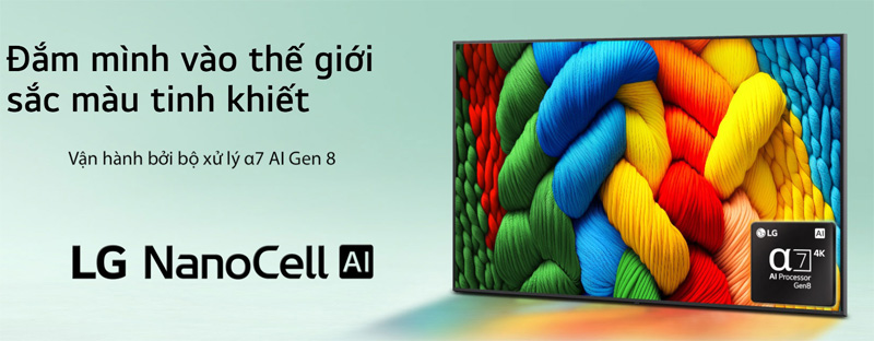 Điểm nổi bật của Smart Tivi NanoCell LG AI 4K 75 inch 75NANO80ASA nằm ở công nghệ NanoCell giúp lọc bỏ tạp chất màu, tái tạo dải màu thuần khiết và rực rỡ hơn. Nhờ đó, từng khung hình trở nên sống động, chân thực, đặc biệt khi trải nghiệm xem phim điện ảnh như rạp chiếu phim tại gia, thể thao hoặc chương trình giải trí chất lượng cao.