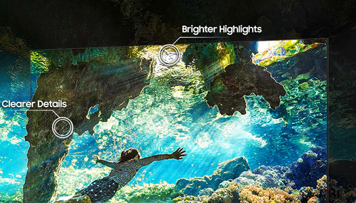 Công nghệ Quantum Matrix Technology 14 bit và Quantum Mini LED kiểm soát dàn đèn Mini LED tối ưu độ sáng để dù trong khung hình sáng bừng hay tối đen thì hình ảnh cũng đạt độ chi tiết ấn tượng.