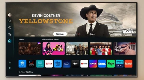 Tivi Samsung QA55S90FAI 4K 55 inch QA55S90F sử dụng hệ điều hành One UI Tizen OS phiên bản 2025 với giao diện trực quan và thao tác mượt mà. Người dùng có thể truy cập nhanh các nền tảng giải trí lớn như YouTube, Netflix, FPT Play, VieON, Spotify, Amazon Prime Video và Apple TV ngay trên màn hình lớn, tìm kiếm nhanh chóng, thao tác đơn giản ai cũng có thể sử dụng được.