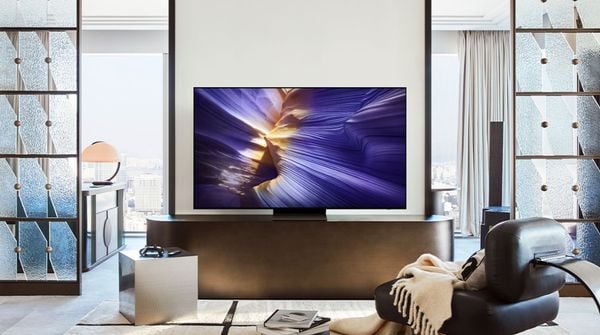 Smart Tivi Samsung OLED Vision AI 4K 65 inch QA65S90F nổi bật với phong cách thiết kế tối giản cùng phần viền màn hình siêu mỏng, tạo cảm giác hình ảnh rộng và liền mạch hơn khi xem. Màn hình 65 inch mang đến trải nghiệm xem rộng rãi, phù hợp với phòng khách lớn, phòng giải trí gia đình, văn phòng công ty hoặc phòng họp.