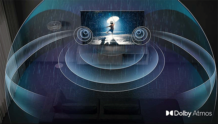 Công nghệ Dolby Atmos tạo nên âm thanh đa chiều cho trải nghiệm mạnh mẽ như chất âm đang trôi quanh bạn, cuốn hút trong từng nội dung.