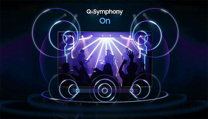 Công nghệ Q-Symphony 3.0 cho bạn chìm đắm trong giai điệu sôi động được tạo nên bởi sự đồng bộ thăng hoa của loa tivi và loa thanh.